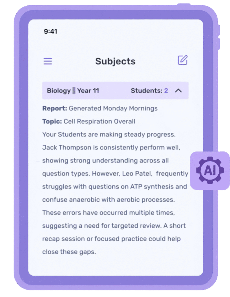 24/7 exam-board aligned AI support across all subjects, with teacher oversight